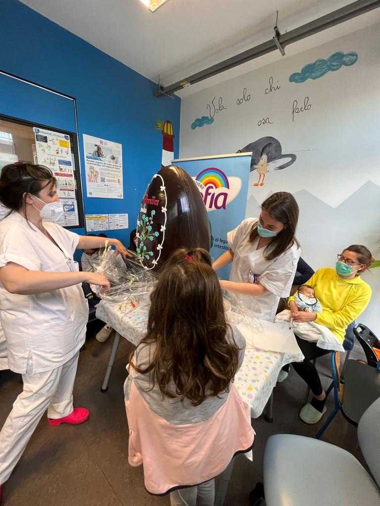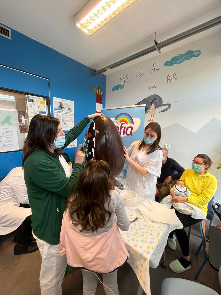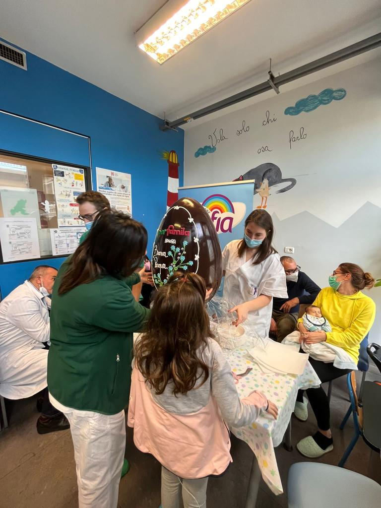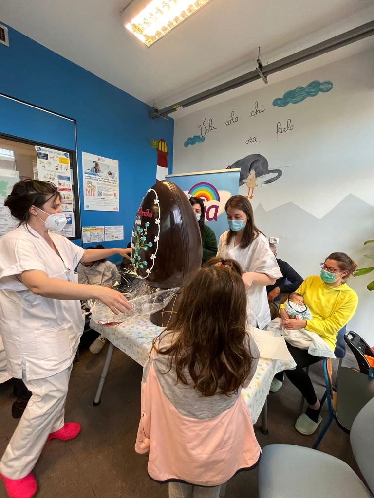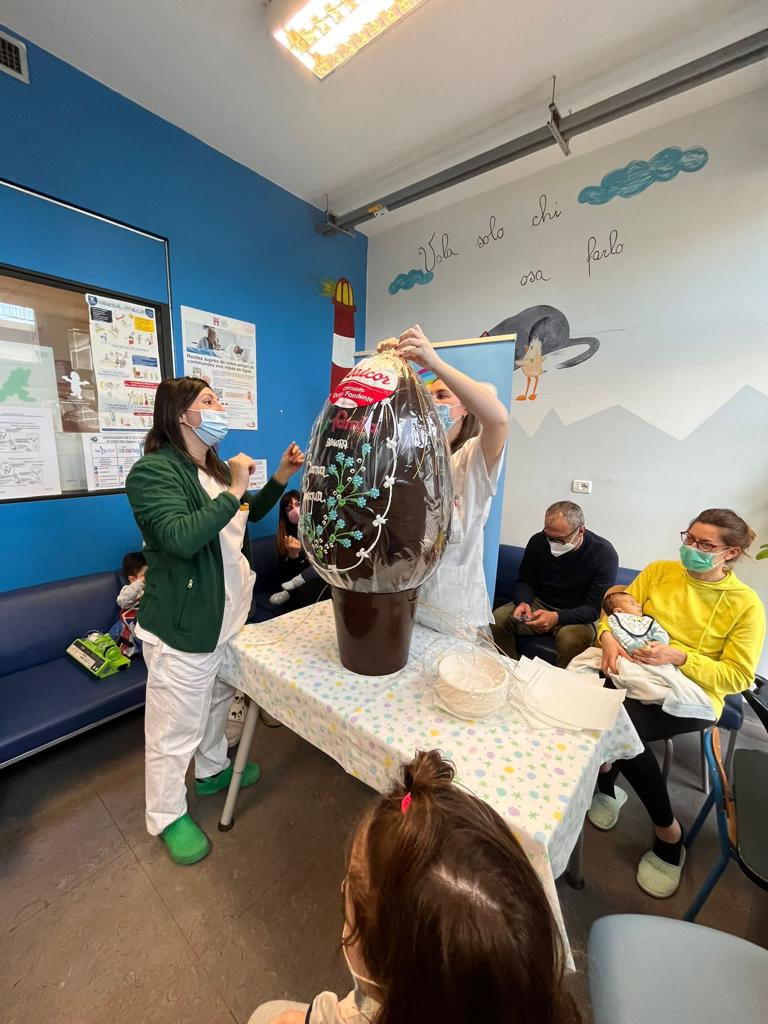 In collaborazione con Iper Famila abbiamo recapitato al terzo piano della Pediatria un uovo di cioccolato per i bimbi ricoverati. Ci piace pensare di aver donato loro un piccolo momento di dolcezza e svago ed aver reso più leggera questa giornata di festa passata tra le mura dell'ospedale.