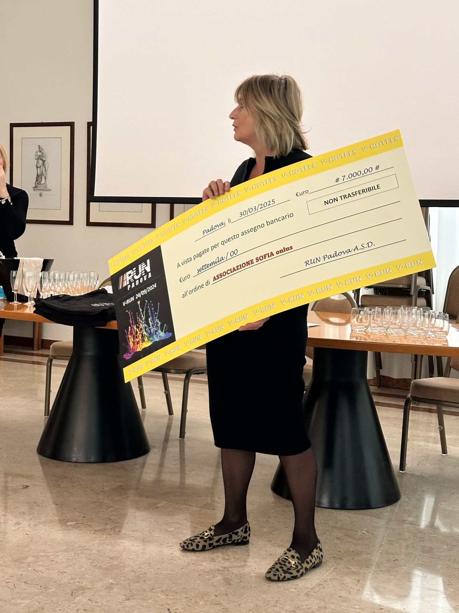 Giovedì 10 aprile scorso all'hotel Antoniano di Montegrotto Terme, alla presenza degli sponsor, dei Sindaci di Montegrotto Terme e Abano Terme c'è stata la consegna ufficiale dell'assegno di € 7.000 da parte del team di V-RUN PADOVA a sostegno dei progetti di Associazione Sofia Onlus.