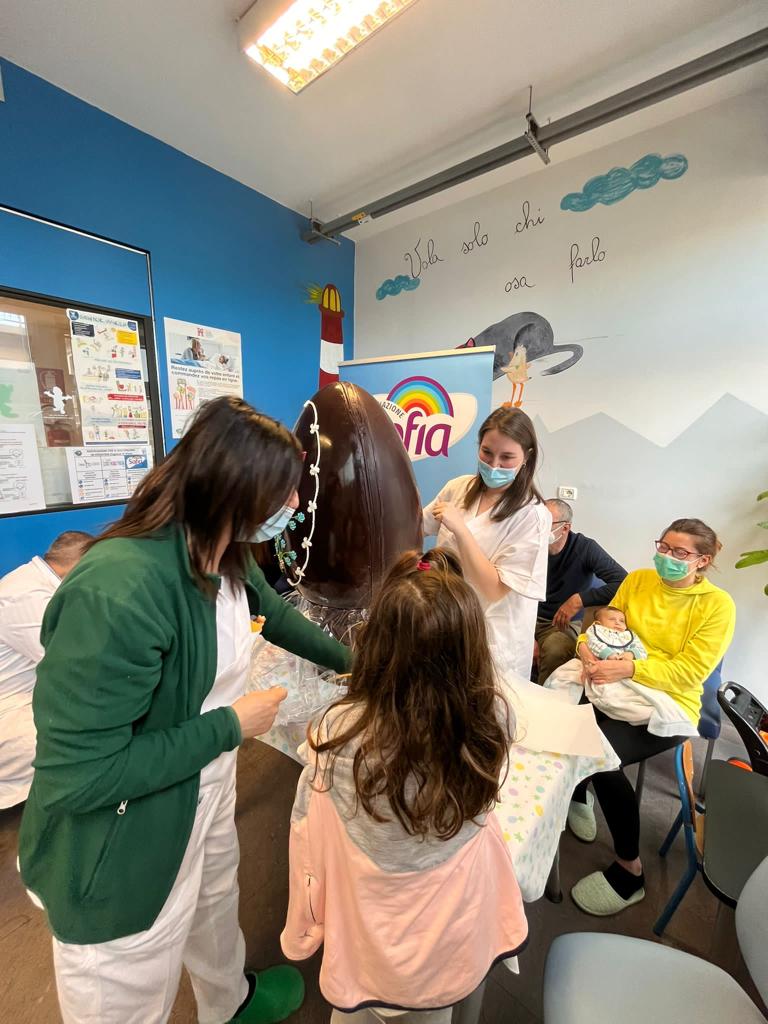 In collaborazione con Iper Famila abbiamo recapitato al terzo piano della Pediatria un uovo di cioccolato per i bimbi ricoverati. Ci piace pensare di aver donato loro un piccolo momento di dolcezza e svago ed aver reso più leggera questa giornata di festa passata tra le mura dell'ospedale.