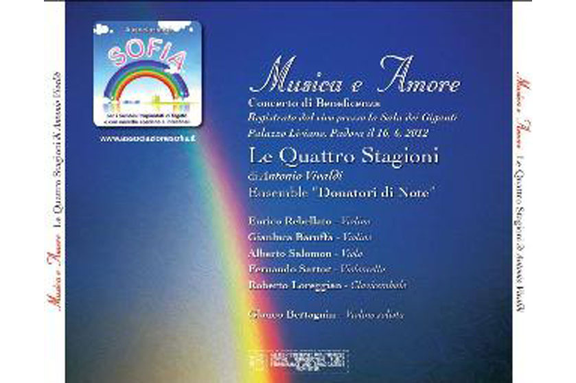 L'Associazione Sofia, informa che è disponibile il CD del Concerto di beneficenza registrato dal vivo presso la Sala dei Giganti Palazzo Liviano, Padova il 16 giugno 2012: