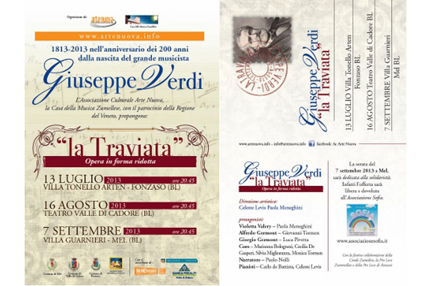 Promotore dell'evento: L'Associazione Culturale Arte Nuova, la Casa della Musica Zumellese, propongono l'Opera in forma ridotta, "La Traviata" di Giuseppe Verdi.