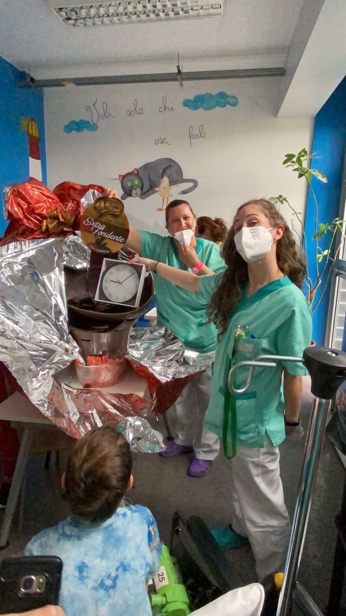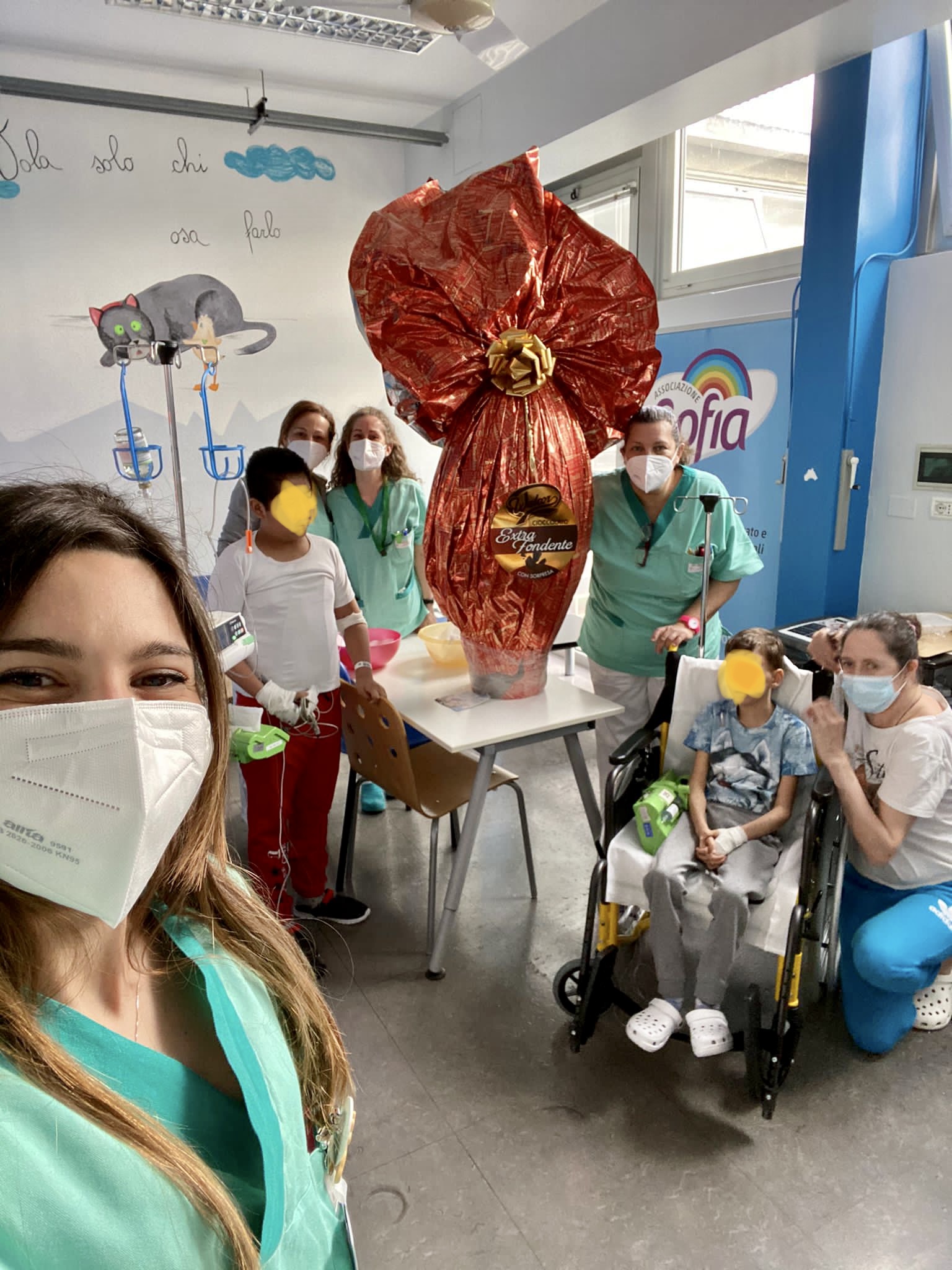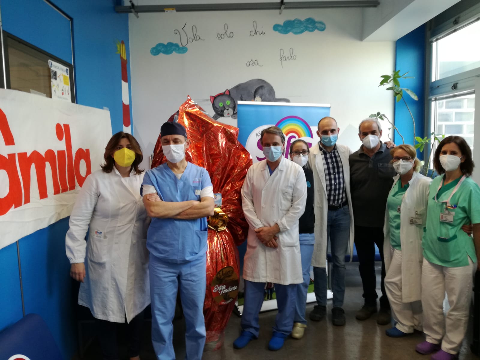 Con Medici ed Infermieri, abbiamo provato a regalare un po di golosa gioia Pasquale ai nostri bambini ricoverati in reparto. E' stato, visto il periodo e le restrizioni, un momento breve ma intenso di festa per essere ancor più vicini ai nostri piccoli eroi ed alle loro famiglie.