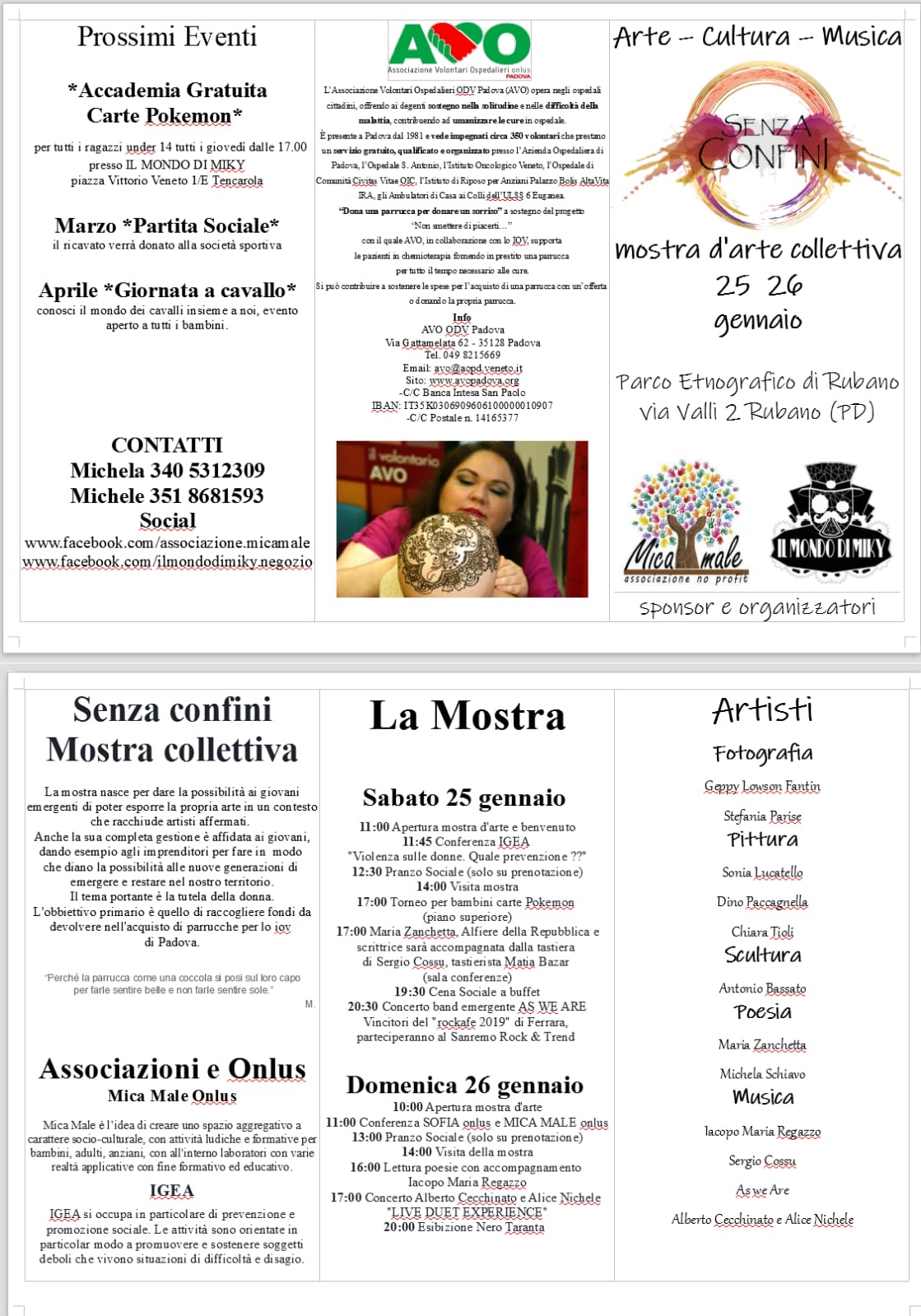Siamo lieti di invitarVi, sabato 25 e domenica 26 gennaio p.v., a questo bellissimo evento con la viva speranza che richiami l'attenzione di tutti. L'obiettivo primario della manifestazione è quello di raccogliere fondi da devolvere nell'acquisto di parrucche per lo I.O.V. di Padova.