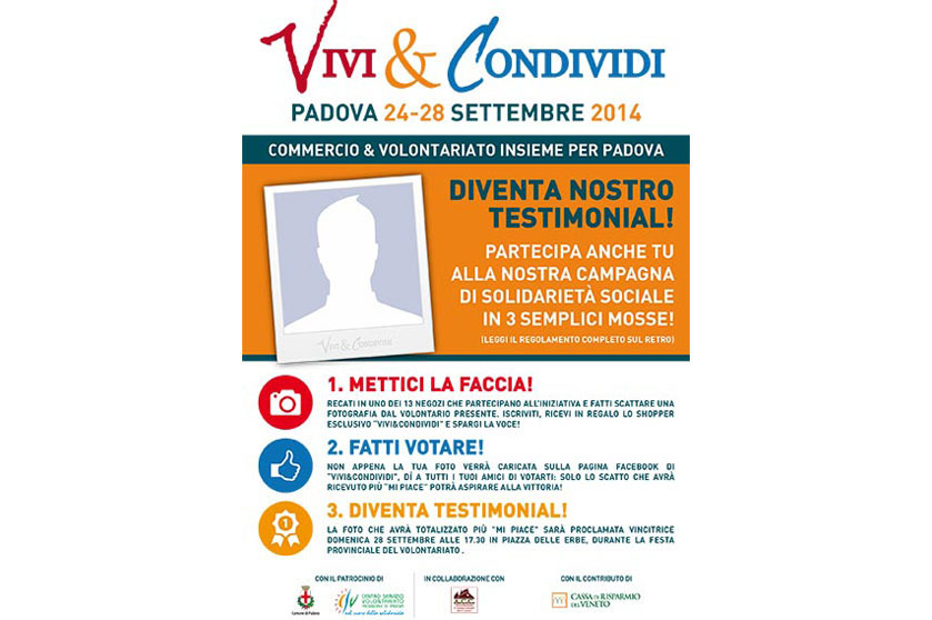 Dal 24 al 27 settembre in ogni negozio verrà allestito un set dove i cittadini di Padova potranno farsi fotografare “mettendoci la faccia” come testimonial/sostenitori dell’associazione adottata dal negozio.